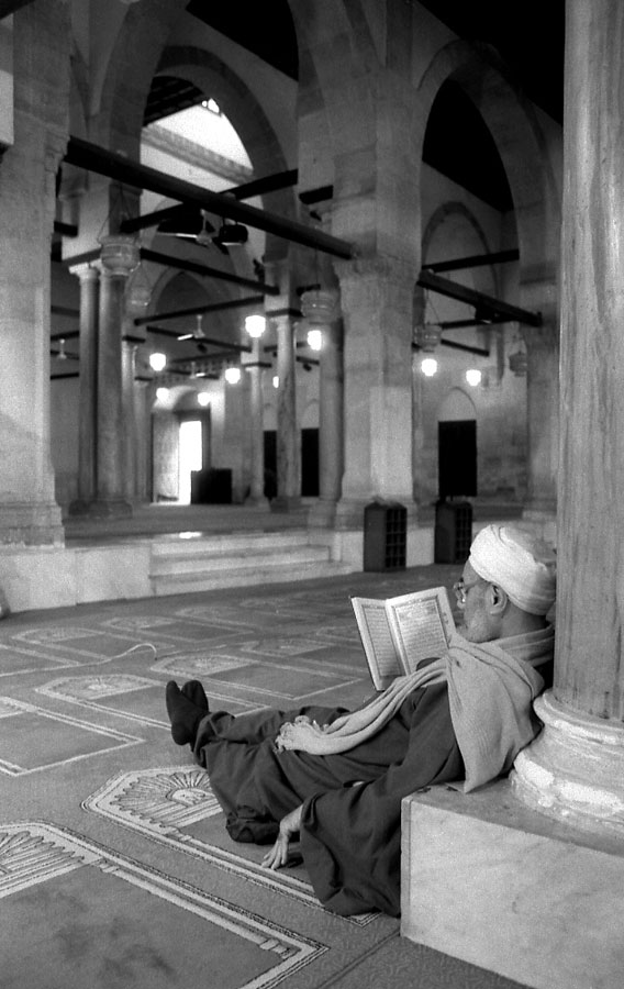 The most famous mosques in Cairo are the Al-Azhar and Al-Hussein mosques, which face each other in the centre of the Fatimid Cairo (X°c.). The Al-Azhar mosque is well renown for its Islamic university; the scholars “Cheikhs” or “Ulemas” of this institution can be recognized through their cloth and their headdress.