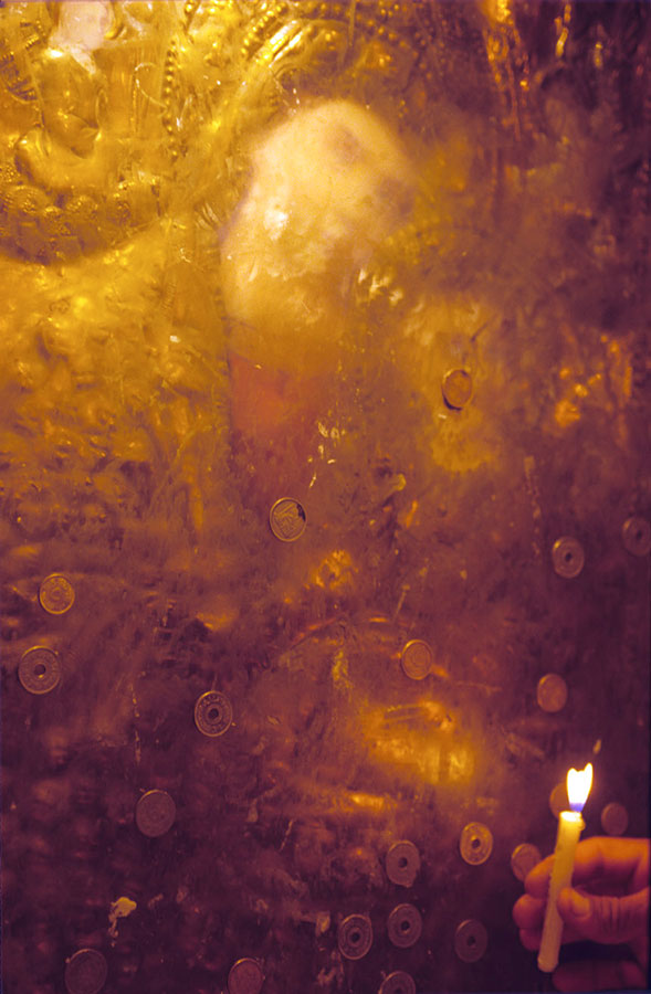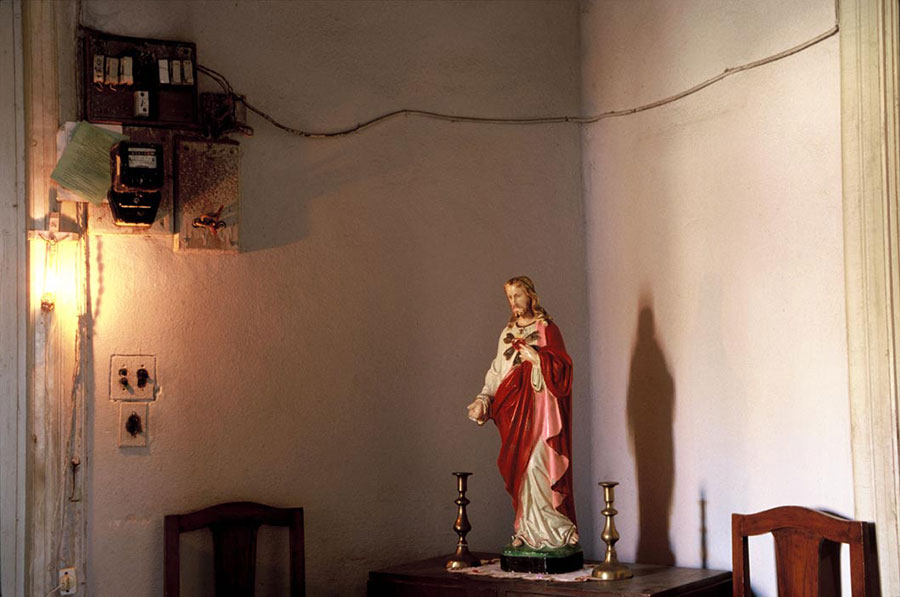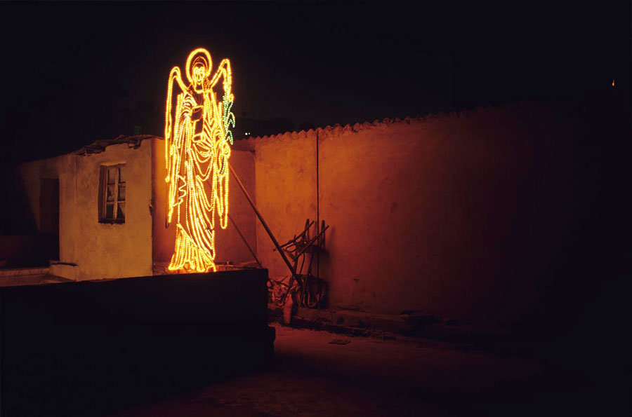 In order to illustrate and transmit this experience, he sometimes uses black and white shots, in large format, reflecting the evening atmospheres with a fascination for the light-dark; at other times, at other times he uses colors in order to highlight details, such as a given object, a fragment of a body; the colors are associated with small formats which seem to be as if many icons are lending themselves to a silent contemplation. This alternation between black & white and colors is a plastic reflection of Nabil Boutros’ double approach: that of an objective reporter, systematic and documentary-like, and that of the nostalgic Egyptian, who longs for intimacy and seeks the roots of his culture.