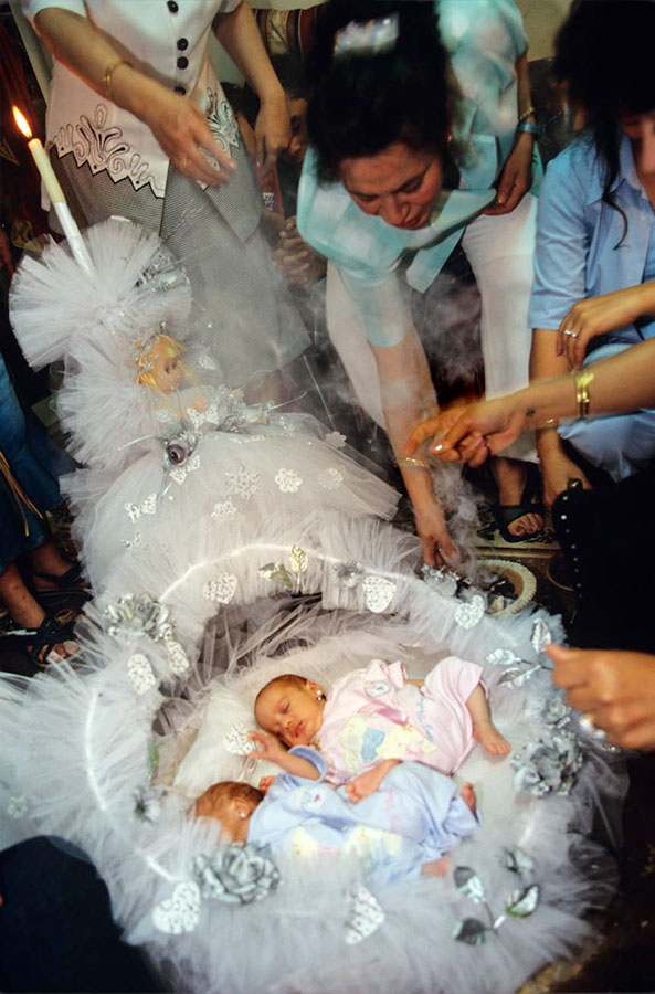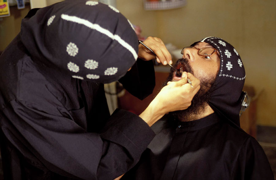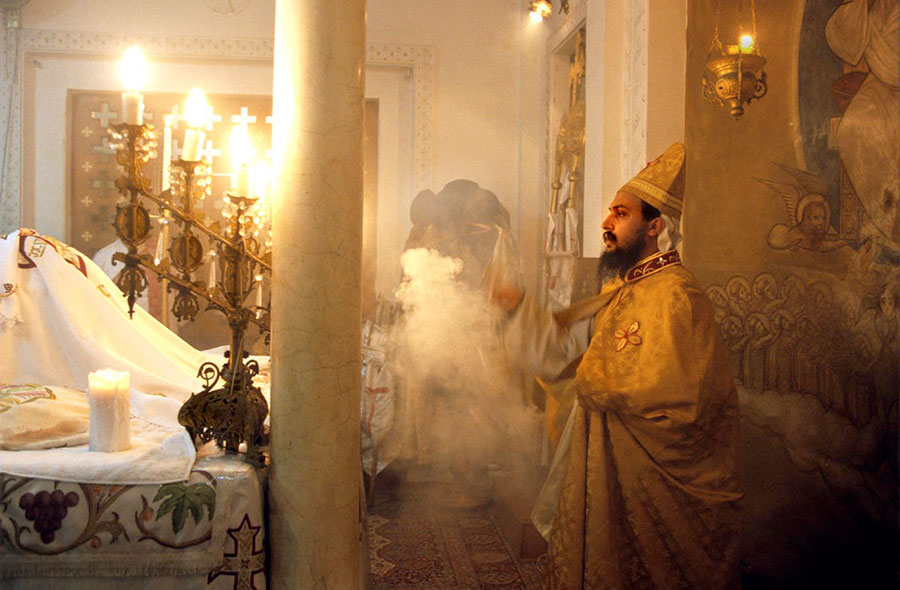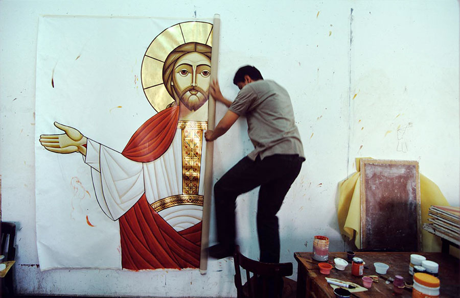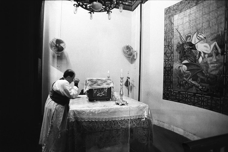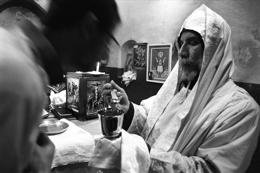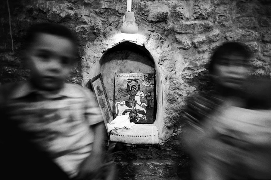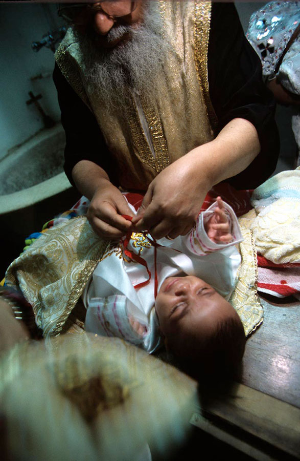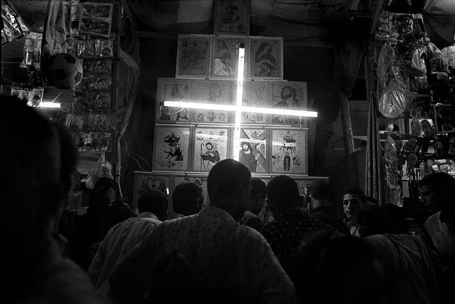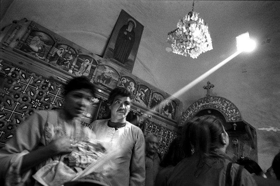 Well integrated in all segments of the society, the Copts cannot be readily distinguished from the Muslims in public life. It is through their life styles in private and their religious practices that Nabil Boutros aimed to highlight their specifics and differences. His camera followed them to their homes, their churches during rituals and celebrations, such as Easter, Jesus Christening or the arrival of the Holy Family to Egypt, or to their many pilgrimages dedicated to saints, and during which relics and icons are venerated.