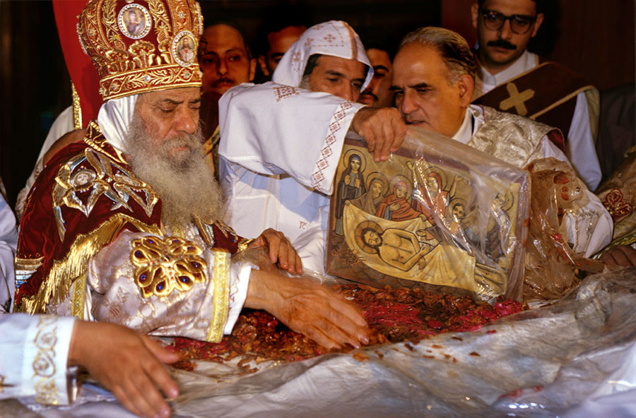 Intégrés dans tous les secteurs de la société, les coptes se distinguent peu des musulmans dans la vie publique. C’est donc vers leur vie privée et leurs pratiques religieuses que Nabil Boutros a tourné son objectif afin de mieux cerner leur spécificité. Nous les suivons chez eux, à l’église lors des rituels ou des fêtes comme celles de Pâques, du Baptême du Christ ou de l’entrée de la Sainte Famille en Egypte, au cours des nombreux pèlerinages dédiés aux saints, propices à vénérer reliques et icônes.