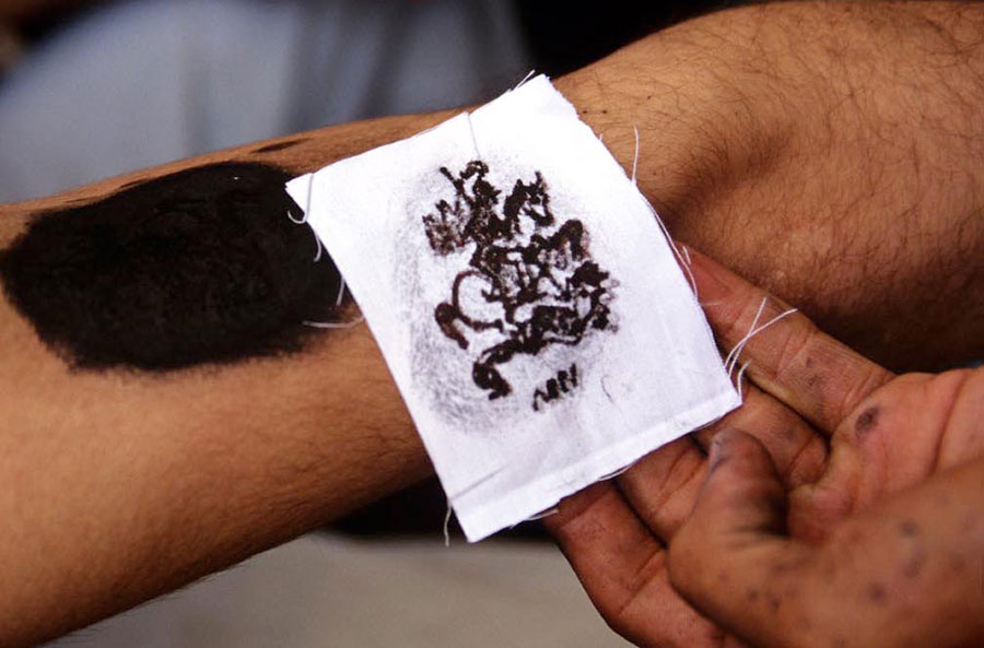 Pour traduire cette expérience, il a recours tantôt à des tirages en noir et blanc, de grand format, qui traduisent les atmosphères nocturnes et une fascination pour le clair-obscur, tantôt à la couleur, chargée de magnifier les détails – un objet, un fragment de corps – associée à des petits formats qui apparaissent comme autant d’icônes se prêtant à une contemplation méditative. Cette alternance traduit plastiquement la double approche de Nabil Boutros : celle, systématique et documentaire, du reporter et celle, intimiste et affective, d’un homme qui remonte aux sources de sa propre culture.