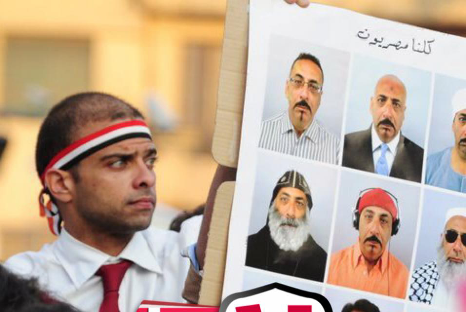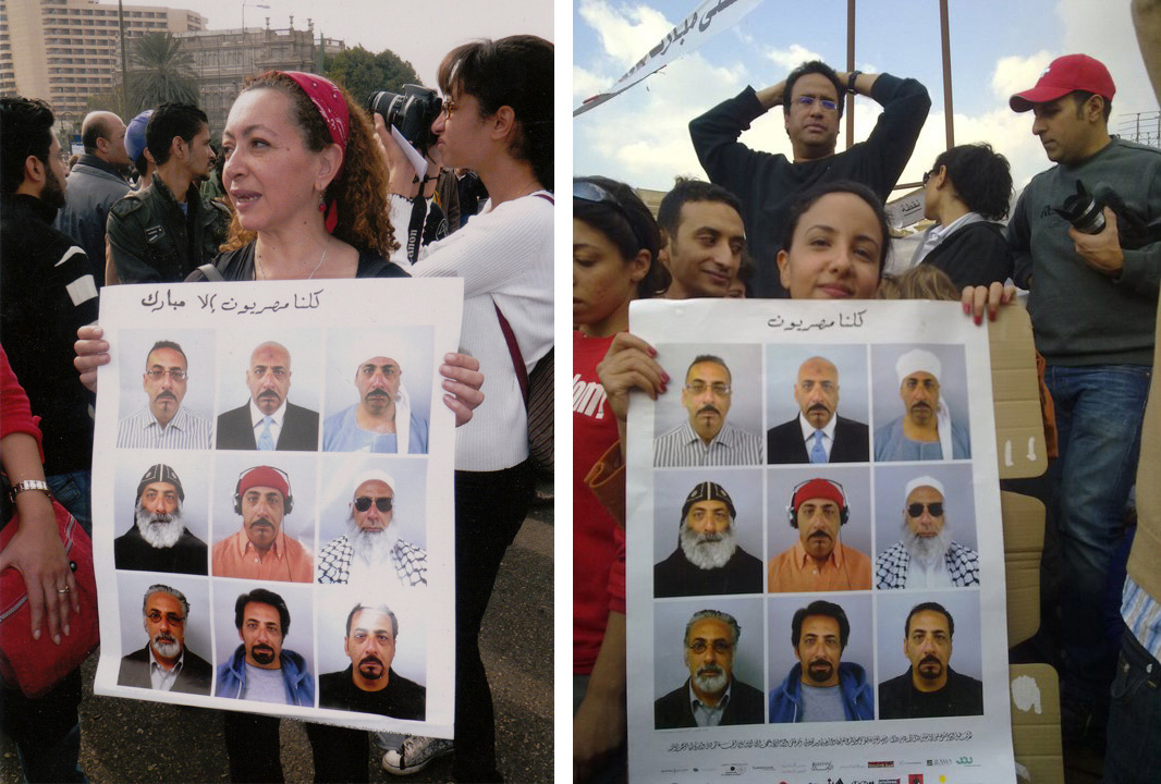 Après avoir réalisé une affiche de protestation contre un attentat avec ces portraits et y ajoutant le slogan « Tous Égyptiens », les manifestations soulèvent l’Égypte. Sur la place Tahrir pendant le sit-in et plus tard, des activistes ont affiché et reproduit en grand le poster comme un signe d’unité et de ralliement.